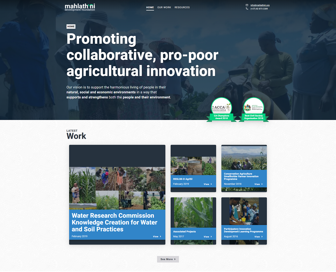 Mahlathini Development Foundation is a small non-profit organisation that specialises in agricultural development of smallholders in rural environments. A custom solution has been created for Mahlathini to serve their research papers and reports, manuals and training videos in an organised structure.